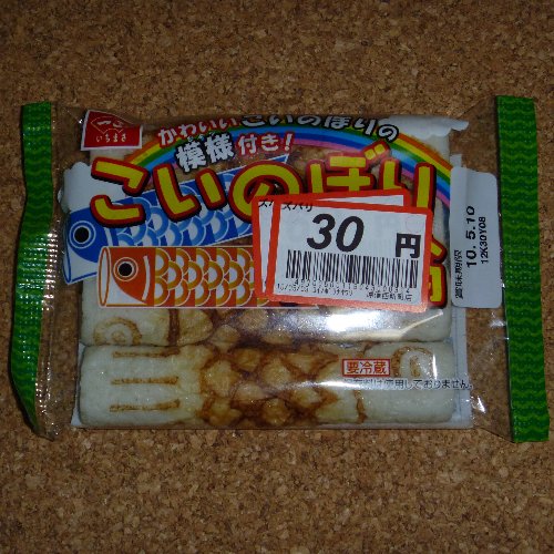 一正のこいのぼり竹輪です。 竹輪に鯉のぼりの絵が焼き付けてありますが 味は普通の竹輪です。 1本33キロカロリーで4本入り132キロカロリー。 購入価格は見切り品で30円でした。 ちくわだけでは物足りない方は。 にほんブログ村 PR |
