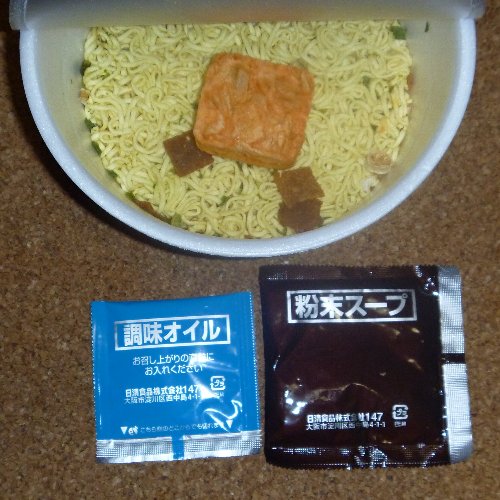 見切り品で108円が 半額の54円でした。 液体スープがフタに 貼り付けてありますが 今回は入れませんでした。 コレで30秒の状態。 少し固まりが残っています。 このくらいが好きです。 液体スープ抜きなので しょうゆ豚骨ではなく スッキリした豚骨味といった感じでした。 お役立ちサイト。 公式サイト 日清食品株式会社 日本最大級ショッピングサイト! お買い物なら楽天市場 |
