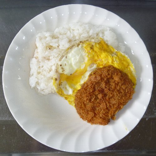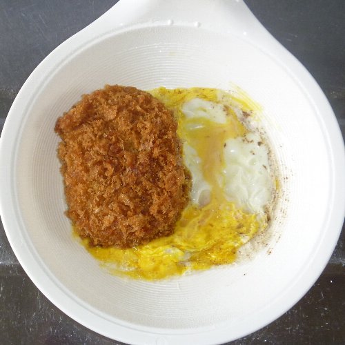 100均で買った「レンジでどんぶり・ハムエッグ」を使います。 材料はご飯3/4合分、玉子1個、 コロッケ(市販の調理済みのモノ)1個、 タマネギ小1/4個、 インスタントラーメンの粉末スープ(しょうゆ味)1/2袋。 コロッケは見切り品を冷凍していたモノです。 粉末スープを入れます。 コロッケは冷凍のままです。 玉子がコロッケの回りに 行き渡るようにするときれいに出来ます。 レンジで1分半チン。 容器を揺すると綺麗にはがれます。 完成です。 お役立ちサイト。 コロッケ広場 株式会社 味のちぬや 日本最大級ショッピングサイト! お買い物なら楽天市場 |