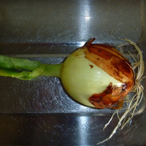 はたけで採れたタマネギを入れます。