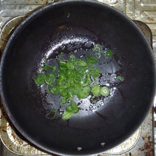 P1030507.JPG油大さじ1を入れた中華鍋等でネギを炒めます。