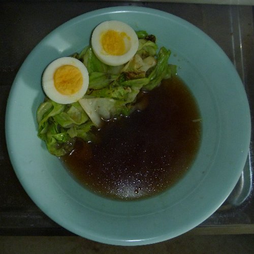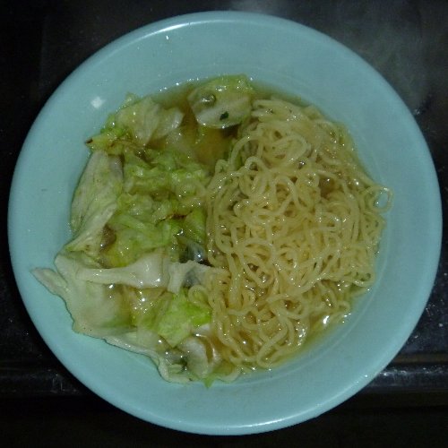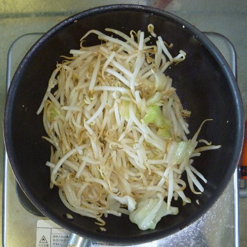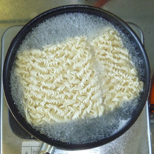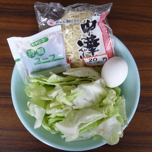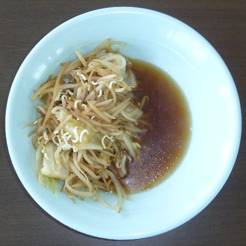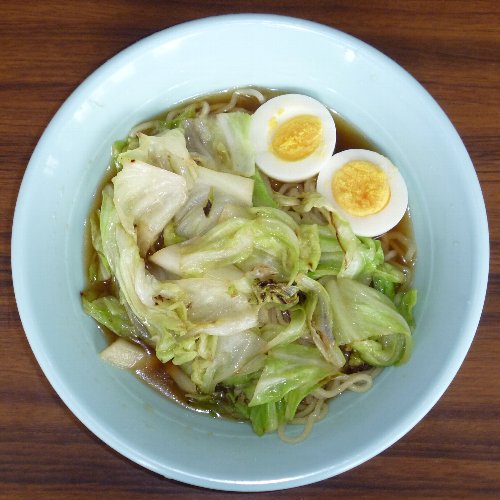 野菜ラーメンです。 ごく普通ですが。 材料は生麺1袋、液体スープ(しょうゆ味)1袋、 野菜、ゆで卵1個。 キャベツのみです。 他に無かったので。 野菜はお好みで。 強火にします。 キャベツを投入。 30秒くらい炒めます 最後に一緒になるので 量はテキトーでかまいません。 中華鍋を軽くゆすいで 水を入れ強火にかけます。 野菜をどんぶりの片側に寄せ ゆで卵をむいて半分に切ってのせます。 野菜から汁が出ますが コレが良いダシになります。 どんぶりに注ぎます。 お湯を切ります。 麺の堅さはお好みで。 野菜を数回に分けて麺の上にのせながら 麺を反対側へ移動するときれいになります。 先に野菜を盛ってしまうので 中華鍋一つですべて出来ます。 麺を堅めに茹でるのは 食う前に洗い物を済ませるからです。 落ち着いて食えます。 お役立ちサイト。 公式サイト 全国製麺協同組合連合会 【ガラス蓋付段付料理鍋24cm】 火加減一つで味が変わります。 段付きで吹きこぼれにくい鍋。使いやすい24cm。 |