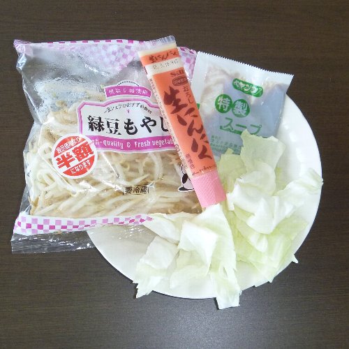 インスタントラーメンの粉末スープ(しお味)で 味噌ラーメンを作ります。 材料は生麺1袋、みそ汁の素1袋、 粉末スープ(塩味)半袋、野菜。 今回は「かに汁」を使いました。 30秒くらい野菜を炒めます。 味付けはお好みで。 どんぶりに移します。 どんぶりの片側に寄せておきます。 中華鍋は軽くゆすいで 水を入れて強火にかけます。 みそ汁の素と粉末スープ1/2袋を入れます。 どんぶりに注ぎます。 400mlで普通のみそ汁くらいの 塩加減です。 味噌ラーメンとしては薄いかもです。 湯を切ります。 ゆで加減はお好みで。 麺をずらすと完成です。 お役立ちサイト。 めんの日 全国製麺協同組合連合会 【ハイエース 家庭用 手回し製麺機】 厚み調整ダイヤルと麺カッター4種付で様々な麺に対応。 初心者でも簡単に生麺が作れます。 |