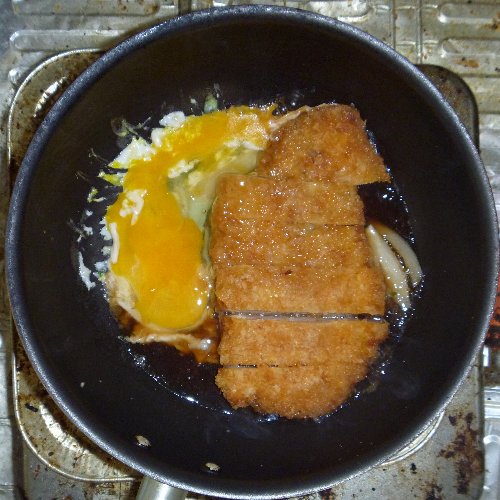 カツ丼を作ります。 材料は粉末スープ(しょうゆ味)半袋、水50ml、 みりん小さじ2、玉子1個、タマネギ、カツ(市販品)。 量はお好みで。 1.5~2cmくらい。 お好みで。 みりんを入れ混ぜます。 強火で加熱します。 玉子を割り入れます。 といたモノを入れてもかまいませんが 洗い物が増えます。 玉子の具合によって お好みの時間で。 お役立ちサイト。 究極のカツ丼 NHK ためしてガッテン 貝印のキッチングッズ。 基本機能と使い勝手を追求したシリーズ。 |
