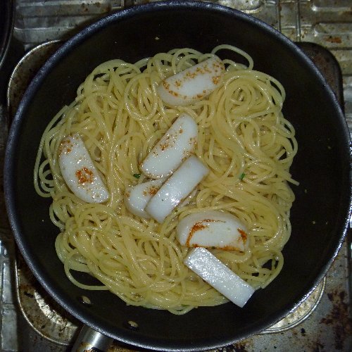 わさび風味のパスタです。 材料はパスタ200g、粉末スープ(塩味)1袋、 かまぼこ小1本、わさび(チューブ)。 ゆでている間にかまぼこを切ります。 1cm強くらい。 油小さじ1をフライパンに入れ かまぼこを中火で焼きます。 両面を焼きます。 焼けたら皿に取り出して下さい。 そのままにすると余熱で焦げます。 かまぼこを焼いたフライパンに投入。 粉末スープを投入。 半袋~1袋弱くらいが ちょうど良いと思います。 混ぜます。 混ぜます。 ワサビを投入。 よく混ぜます。 よく混ぜないと 食べた時に 突然の辛さに襲われます。 お好みで海苔を散らすと 風味が良くなります。 お役立ちサイト。 かまぼこ言葉 全国かまぼこ連合会 焼く、蒸す、炒める、茹でる、炊く。 すべてレンジで出来る話題の商品 |