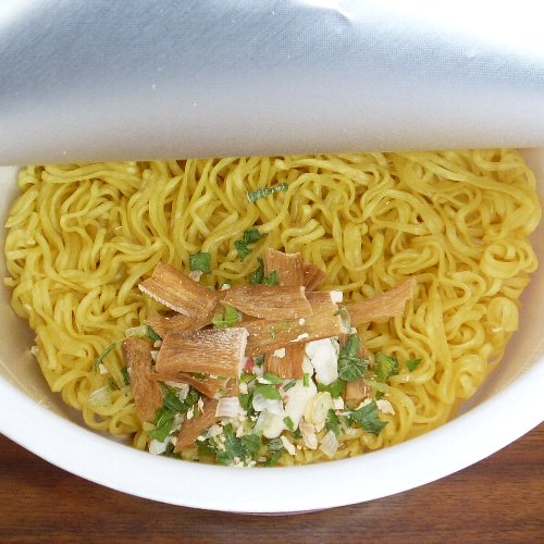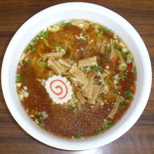 マルちゃん麺づくり香味醤油 しょうが風味です。 購入価格は78円、284キロカロリー。 あたたマルちゃんの表示。 冬に発売したモノの残りでしょうか。 液体スープとかやく、スパイス。 スパイスにショウガが入っています。 かやくはメンマ、ネギ、ナルトです。 ベースはダシの利いたしょうゆ味ですが、 ショウガの風味が良く合います。 チョット意外でした。 ほかのしょうゆ味に チューブ入りショウガや 刺身に付いてくる小袋のショウガなどを 入れても良いのではないかと思います。 もう一品は、粉末スープで作った たこ飯です。 昨日作ったモノを冷凍しておきました。
