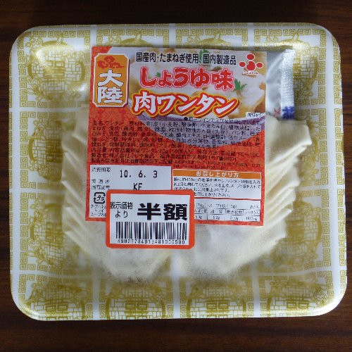 見切り品49円で買った ふじや食品肉ワンタンです。 CGCのインスタント。 塩味ですが、 いつものように味変。 1.5袋使います。 味付け玉子と 味付けタケノコが入ります。 半袋くらい。 通常の半量です。 ワンタンはスープで煮ないと 味がしませんでした。アタリマエ 少し醤油を垂らして食いました。 次はもうチョット考えます。 また何かに使います。 ふじや食品HP 大陸ワンタンの製造メーカー。 ラーメン好き必携。 各種ラーメンストラップ。 PR |
